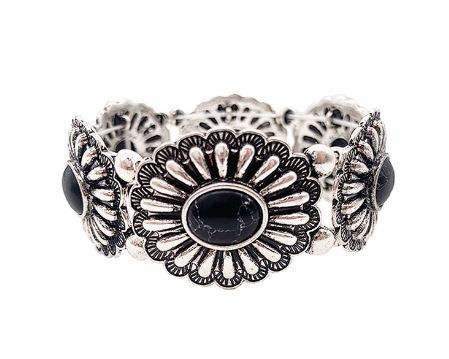 Concho Casting w/Stone Stretch Bracelet Burnish Sliver Black