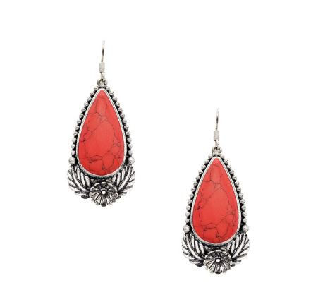Teardrop Stone Earring Burnished Silver Coral