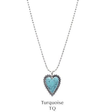 Heart Semi Stone Bead Necklace Silver Burnished Turquoise